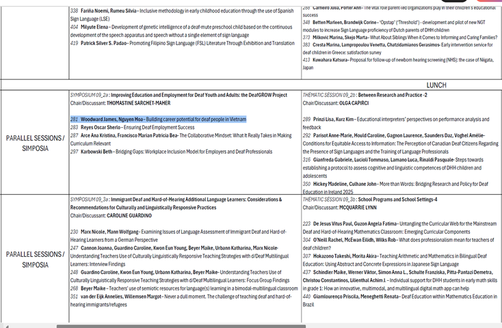 Trong đại hội lần này Ban Giám đốc dự án đã có gửi một bản thảo về dự án Deaf Grow với tựa đề “Building career potential for deaf people in Vietnam” và đã được chọn để trình bày tại đại hội vào ngày 9/11/2025. Môi thông tin về chương trình đại hội có thể tham khảo tại đường link dưới đây